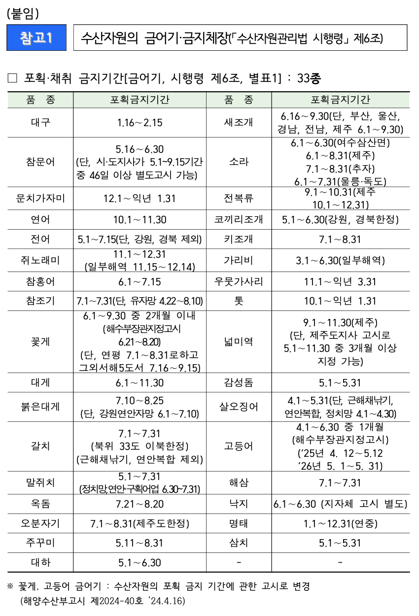 금어기, 금지체장 등 불법 수산물 유통 금지 협조 요청 서비스 공통2025-09-01