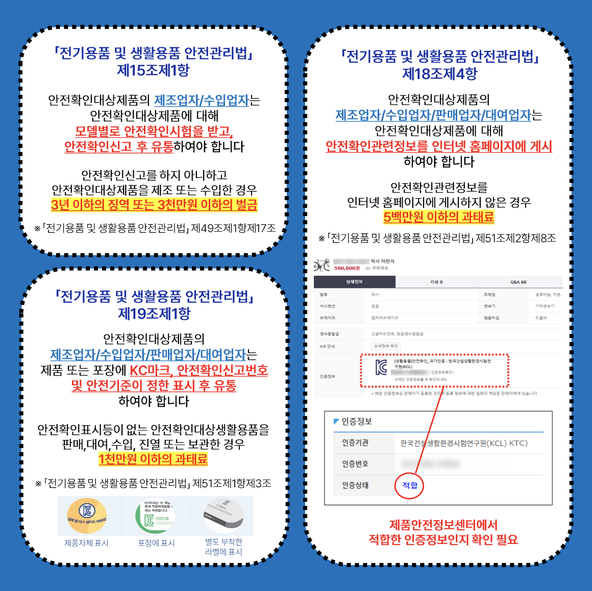판매자께서는 하기 내용을 참고하시어 안전인증/안전확인절차를 거친 제품이 판매될 수 있도록 협조해주시기 바랍니다.