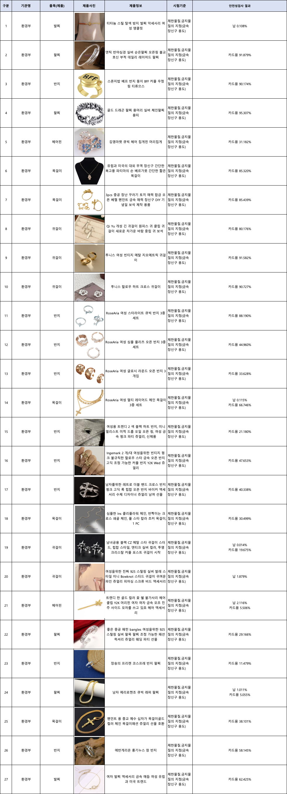 공지사항 본문 [환경부] 해외직구제품 소비자 안전성 조사 결과 안내 서비스 공통2025-09-18안녕하세요 카카오쇼핑 안전거래센터입니다. 환경부에서 공표한 해외직구 제품 안전성 조사 결과를 안내드립니다. 판매자께서는 첨부한 제품 목록을 확인하시고, 안전성 검사 결과 기준치를 초과한 제품이 유통/판매되지 않도록 적극적으로 협조하여 주시기 바랍니다. 감사합니다. 목록으로