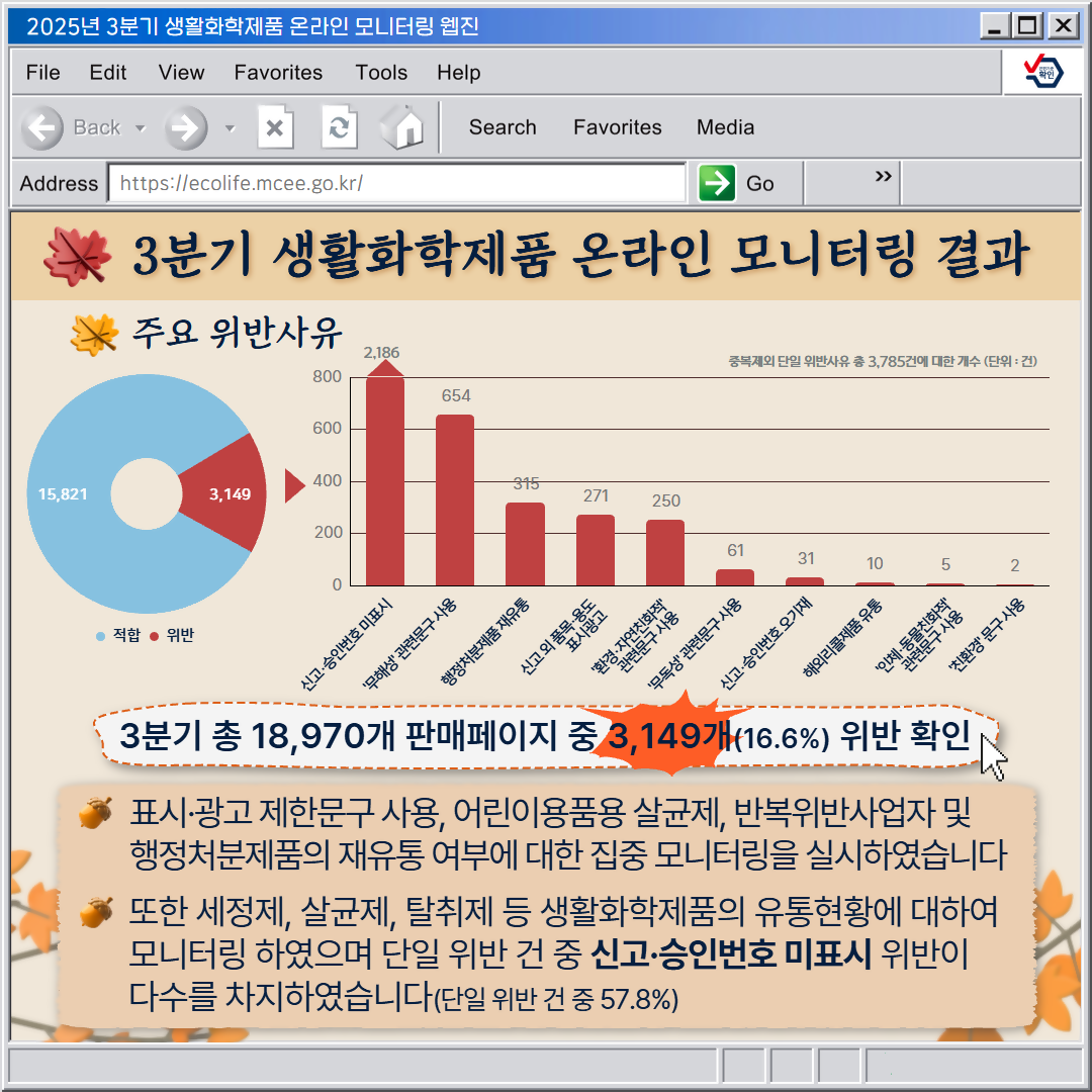 - 25년 3분기 생활화학제품 온라인 모니터링 결과 위반 사유 안내 (신고/승인번호 미표시 등)