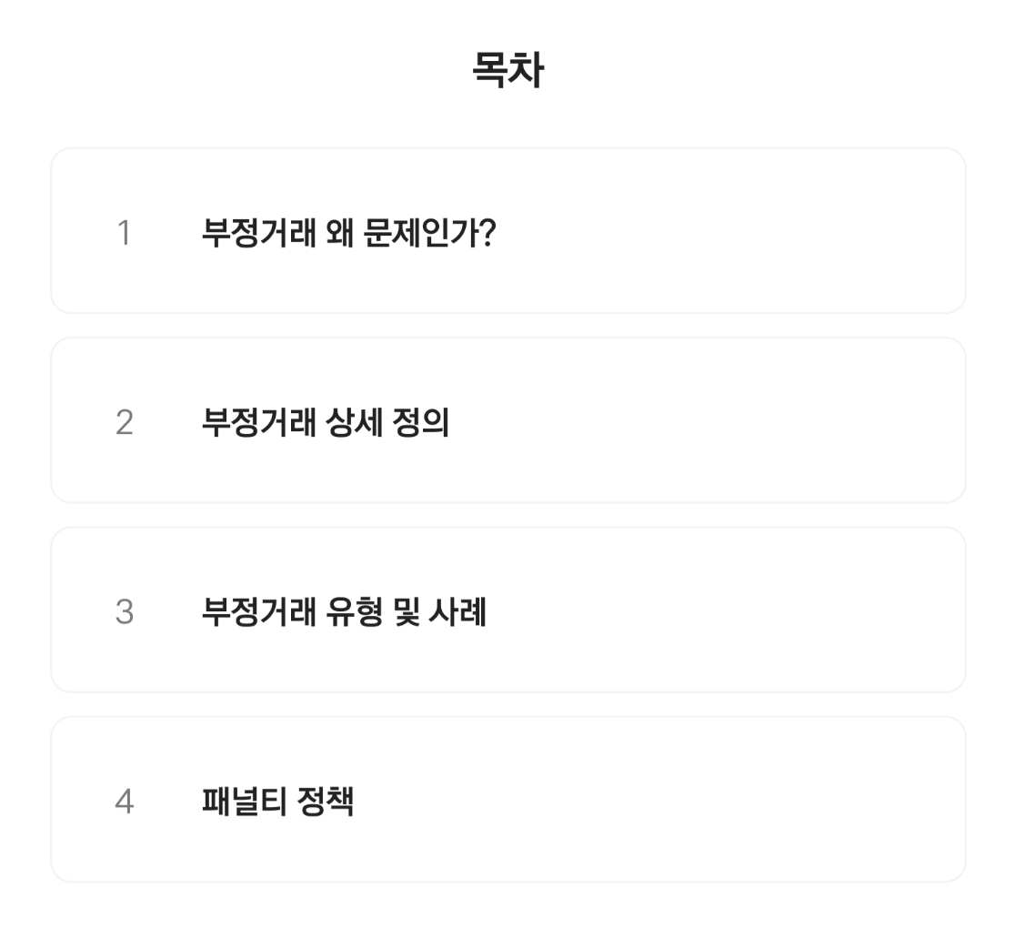 부정거래의 유형과 사례를 확인하고, 페널티 정책을 참고하여 안전한 판매활동을 이어갈 수 있도록 하고자 함으로,