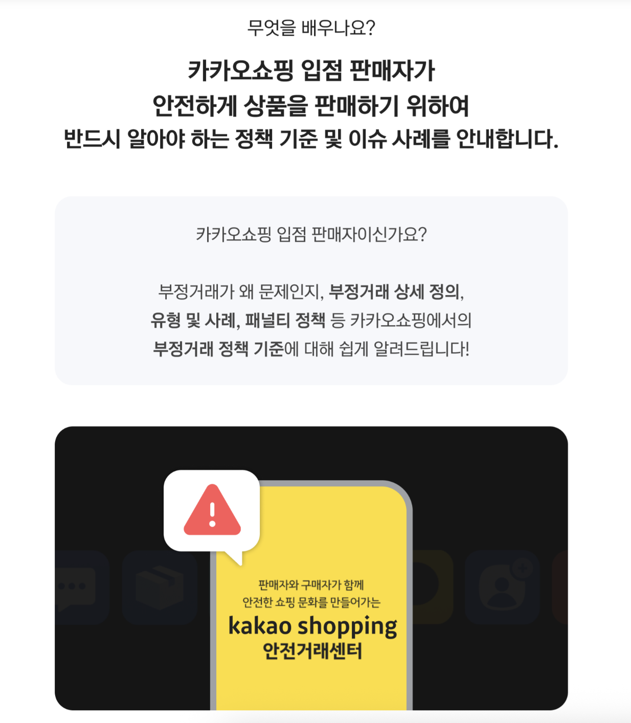 카카오쇼핑 입점 판매자가 안전하게 상품을 판매하기 위하여 반드시 알아야 하는 정책 및 부정거래의 정의와 유형을 이해하고,
