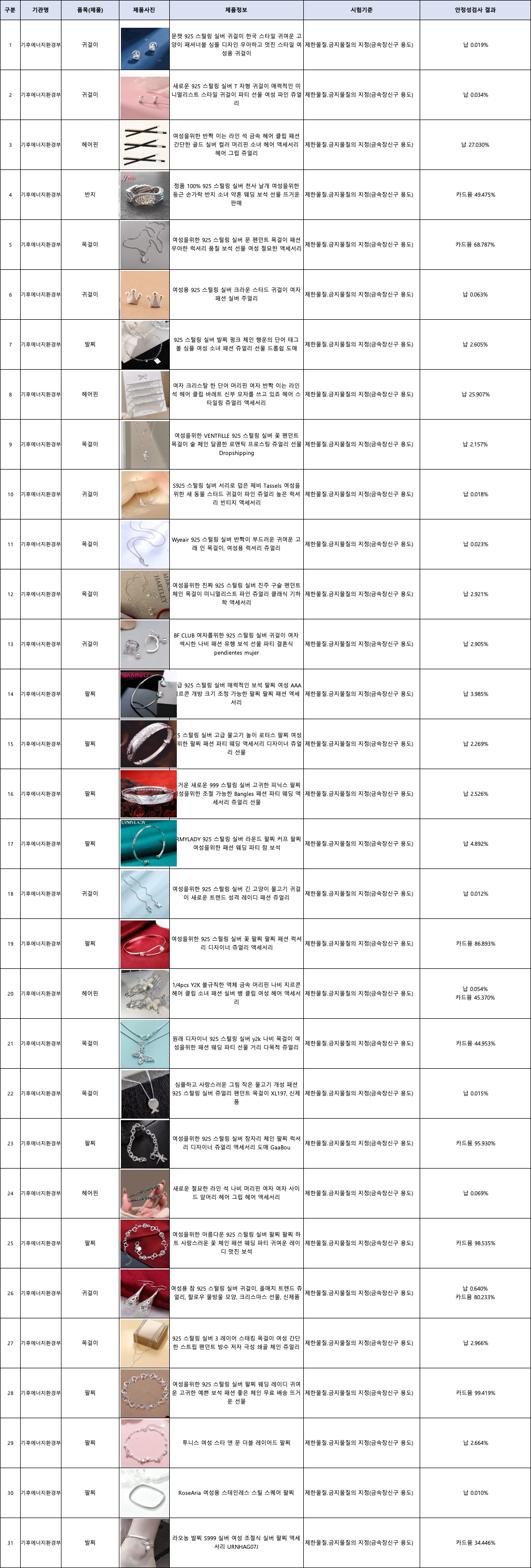 공지사항 본문 [기후부] 해외직구제품 소비자 안전성 조사 결과 안내 서비스 공통2026-01-29안녕하세요 카카오쇼핑 안전거래센터입니다. 기후에너지환경부에서 공표한 해외직구제품 소비자 안전성 조사 결과를 안내드립니다. 판매자께서는 첨부한 제품 목록을 확인하시고, 안전성 검사 결과 기준치를 초과한 제품이 유통/판매되지 않도록 적극적으로 협조하여 주시기 바랍니다. 감사합니다. 목록으로